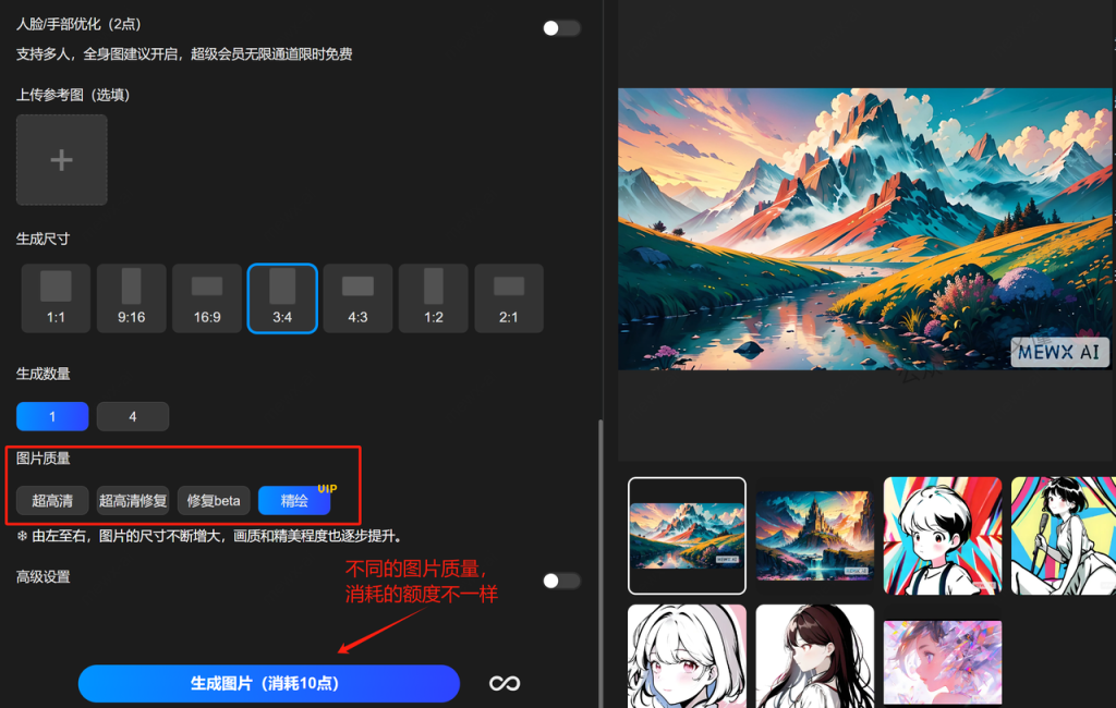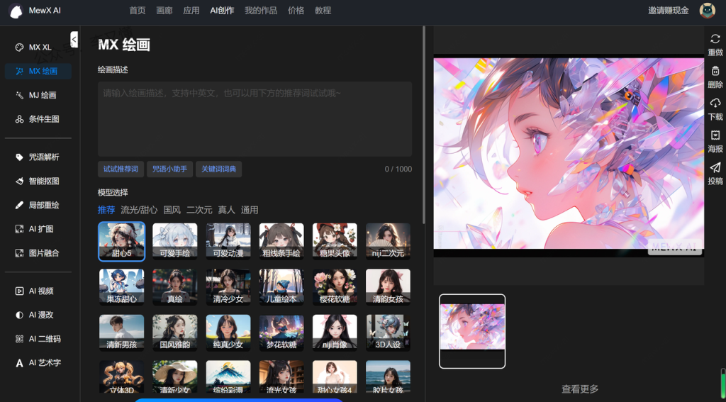 3、使用MEWXAI绘画风景图片