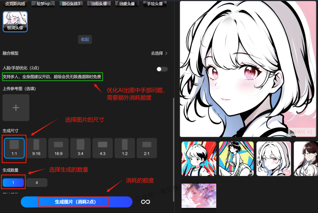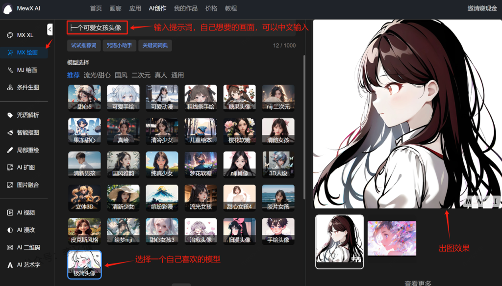 2、使用MEWXAI绘画头像