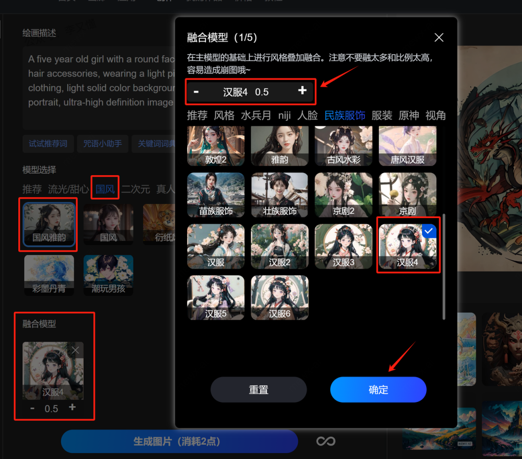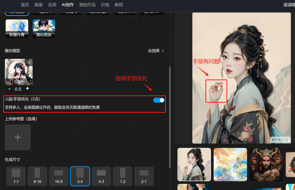 5、使用MEWXAI绘画汉服形象
