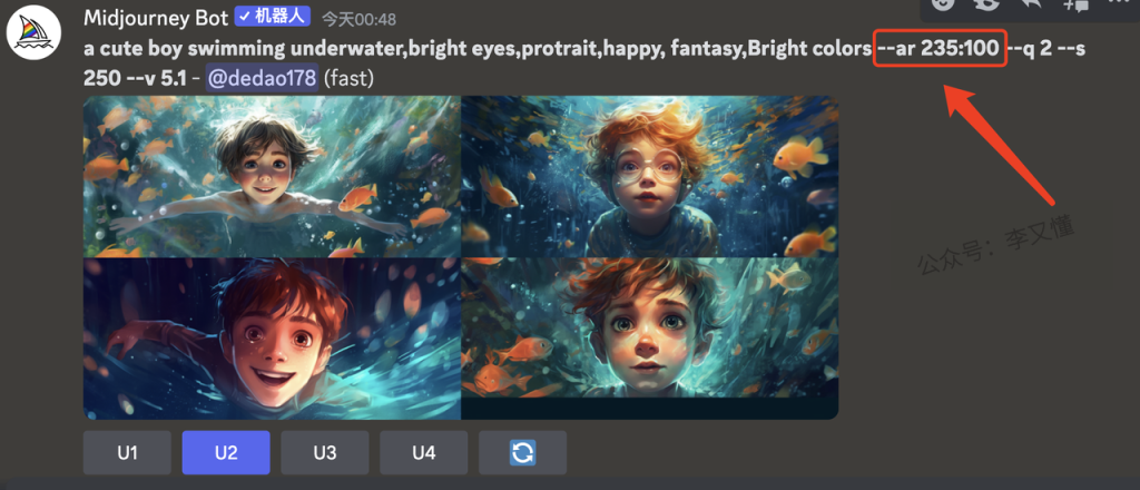 2.如果要生产微信公众号题图,输入尺寸“– ar 235:100”