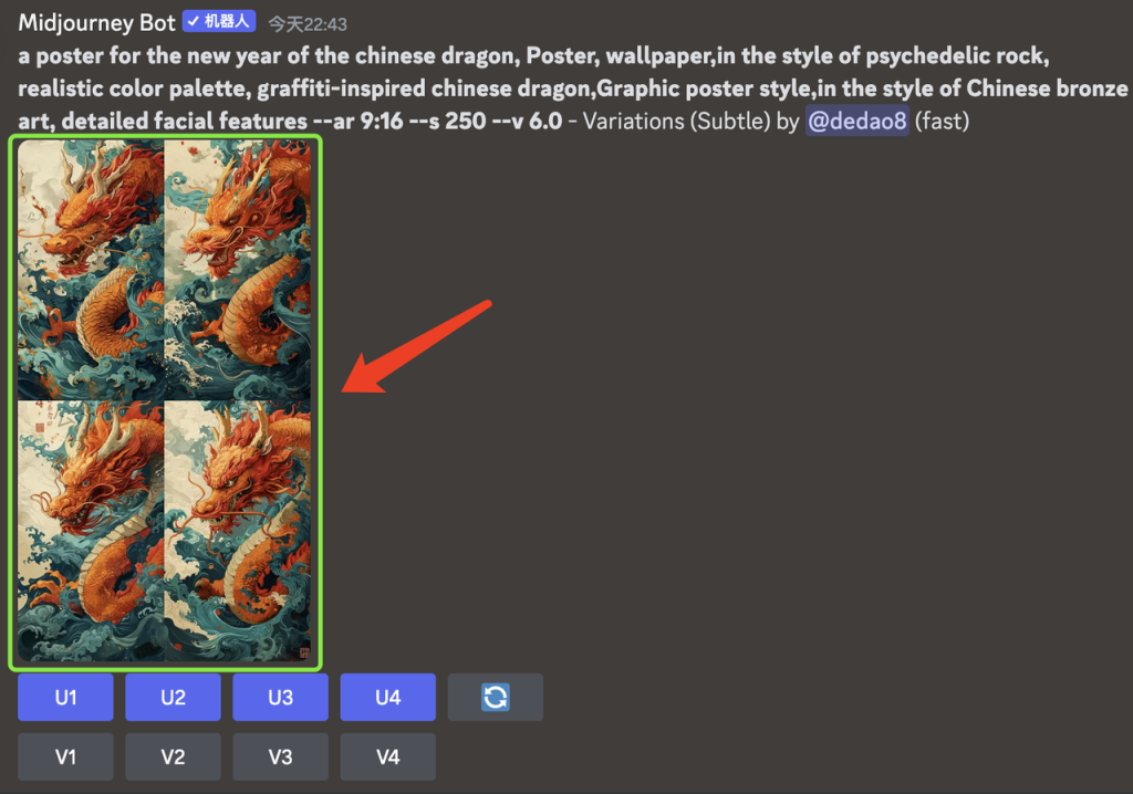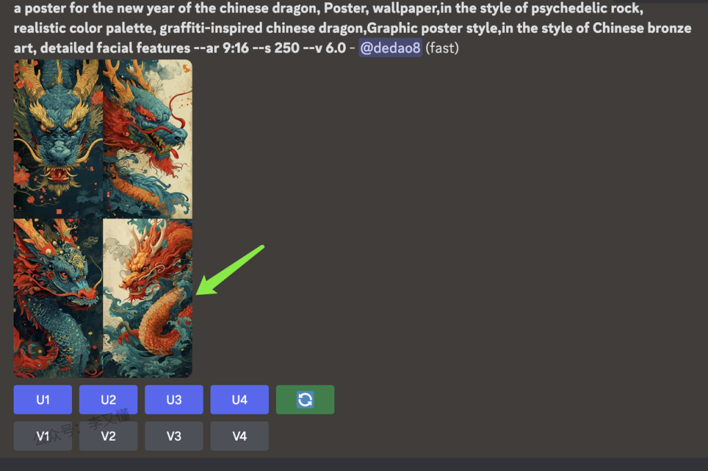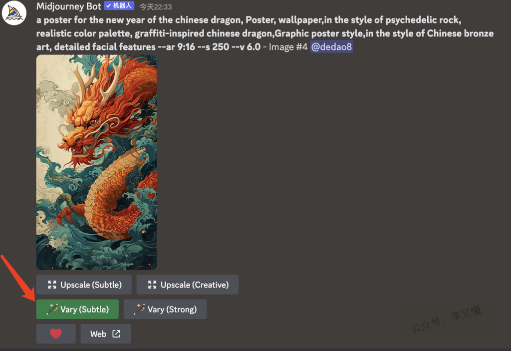 点击自己选中图片下方的:Vary (Subtle)微小变化,生成和目标图片风格一致的图片