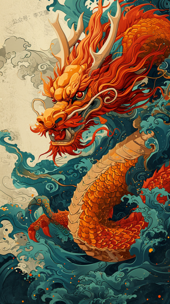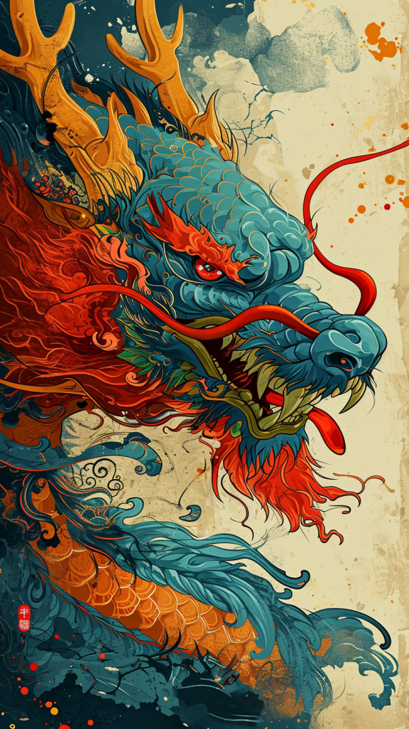 a poster for the new year of the chinese dragon, Poster, wallpaper,in the style of psychedelic rock, realistic color palette, graffiti-inspired chinese dragon,Graphic poster style,in the style of Chinese bronze art, detailed facial features –ar 9:16 –s 250 –v 6.0