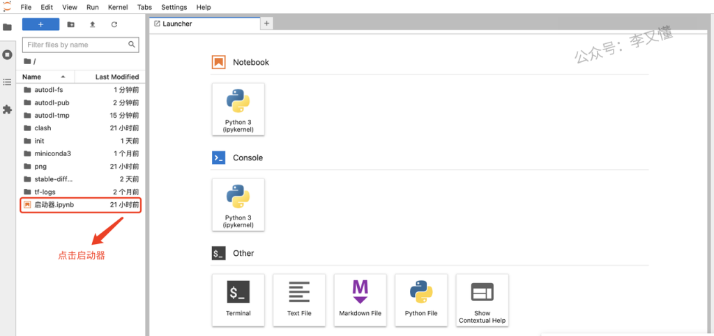 第一步:我们先点击“快捷工具的” “JupyterLab“选项,如下图所示