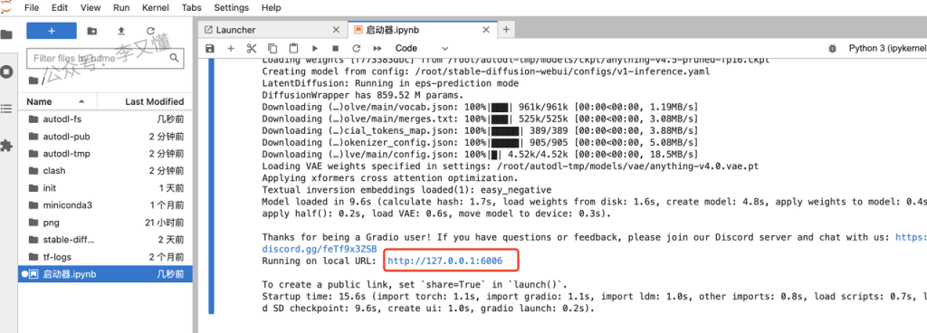 接下来就是等待了。第一次启动需要下载很多模型,所以需要一些时间,第二次启动就不会那么长时间了。