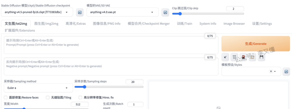 点击后,就可以看到我们的Stable Diffusion Web界面了。