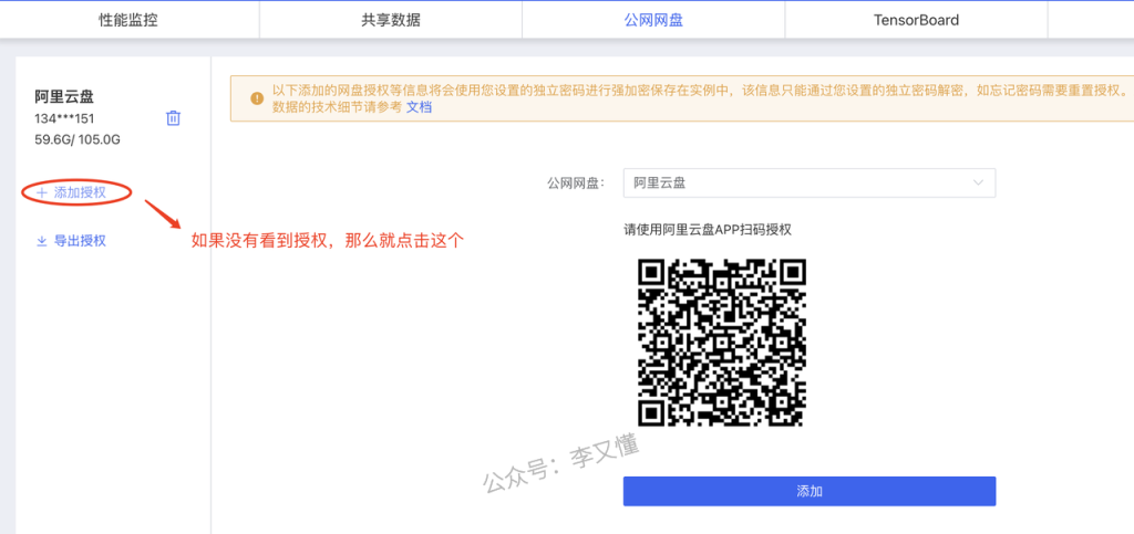 如果大家没有看到这个授权,那么就点击右侧的添加授权
