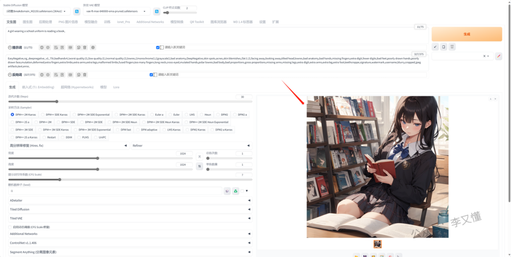 虽然有了图片作为参考,我们可以简单使用一个词组,比如:1girl。但这样生成的图片多半不能如你所愿。