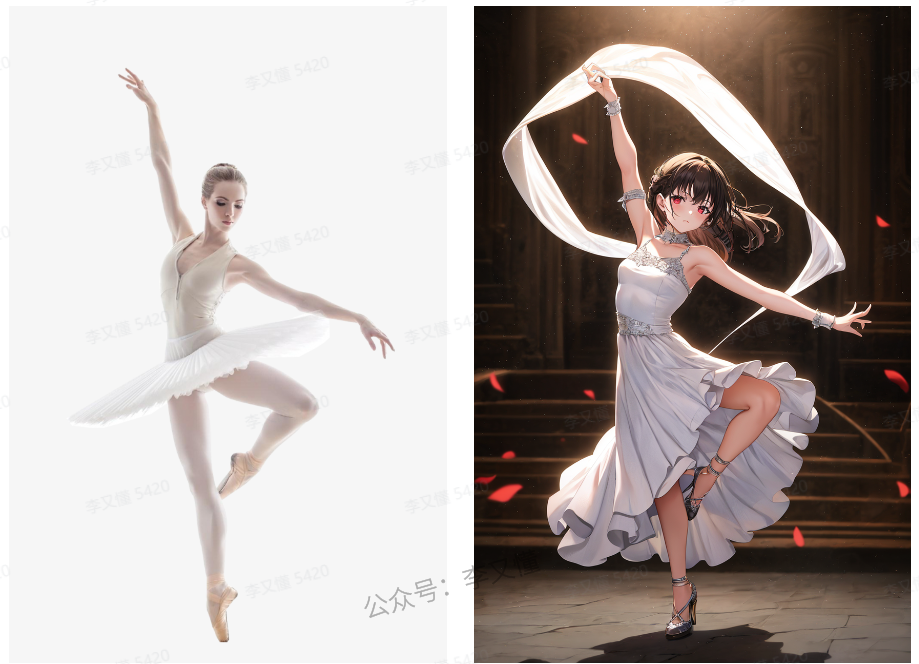 以人物姿势为例,我们可以输入一张特定姿势的人物图,让AI生成这个姿势的人物图片。