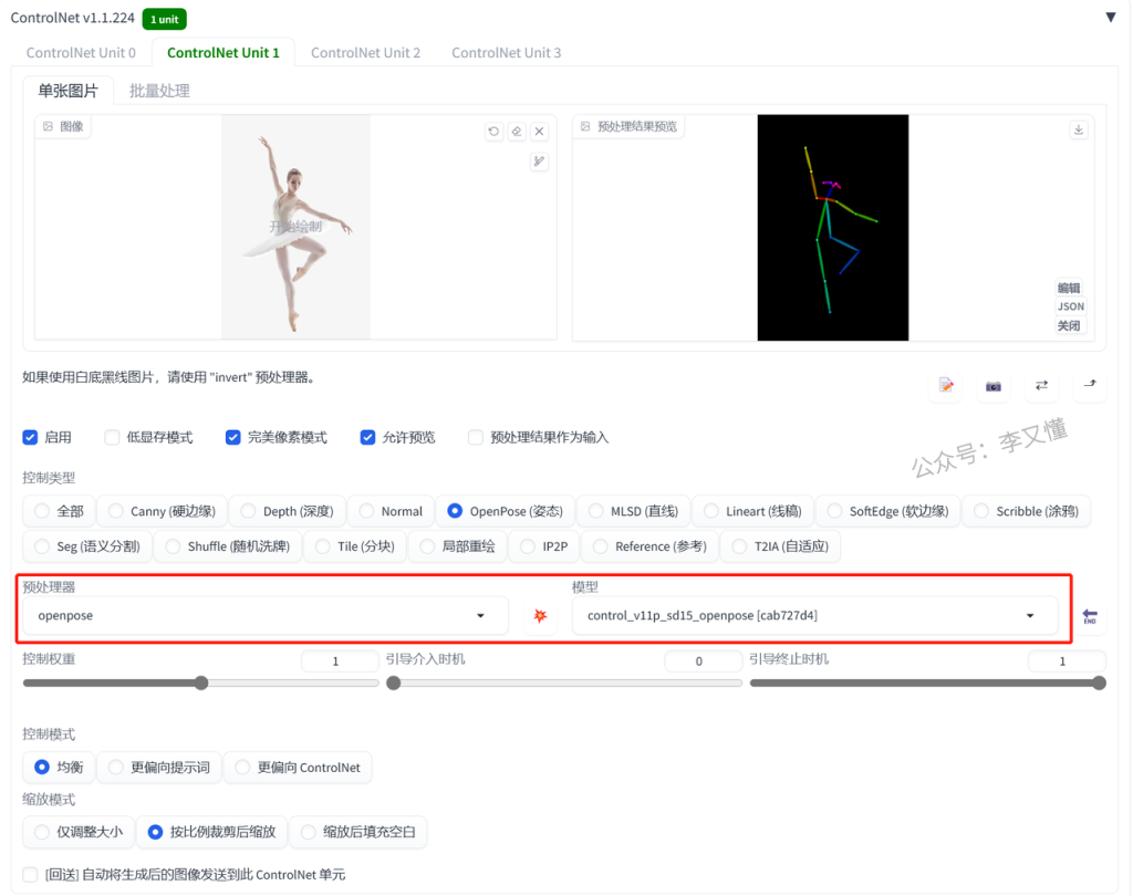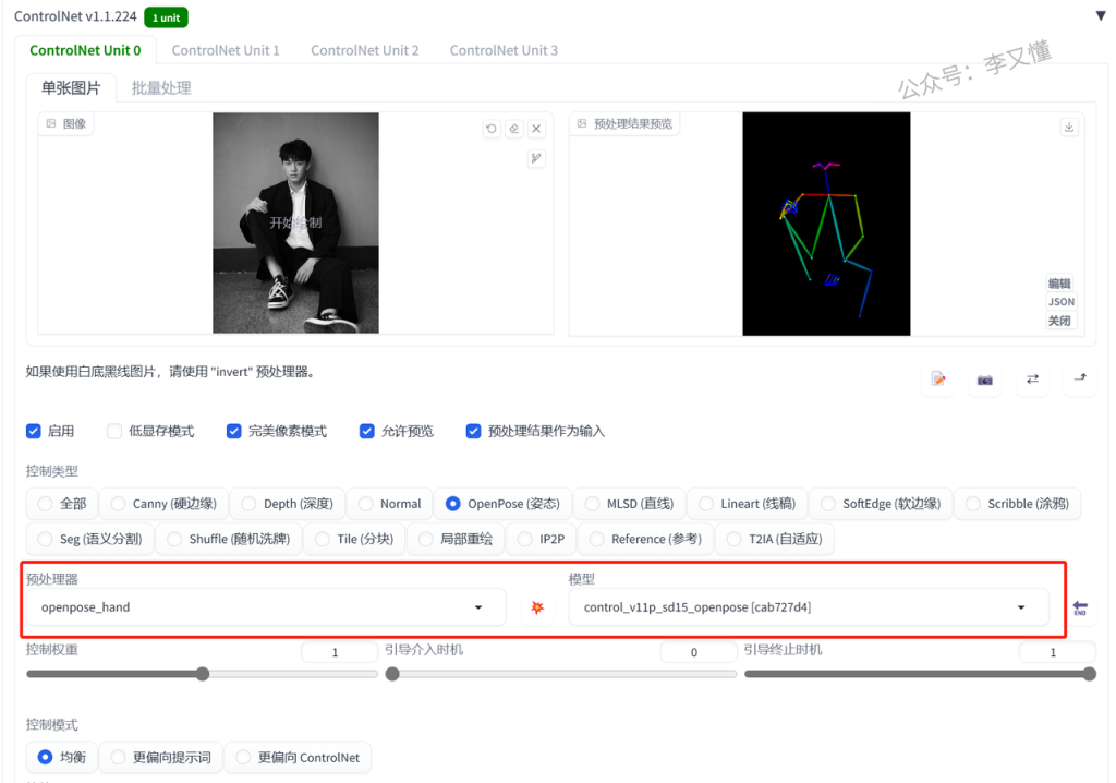这一节讲的是openpose模型,主要控制生成照片人物的姿势