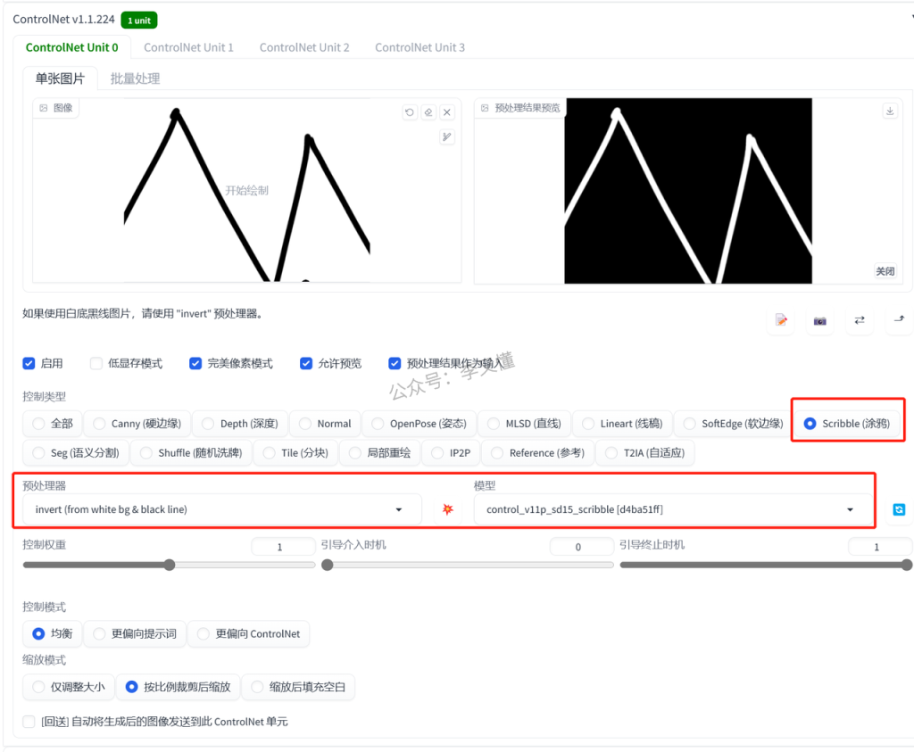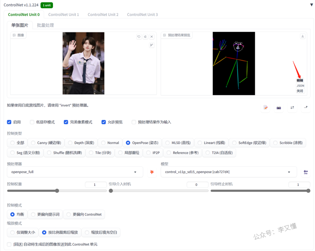 5、type:就是ControINet的不同处理模型,我们控制姿势就是使用open pose模式。剩下的模型会在之后的文章详细解释。
