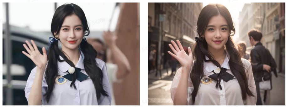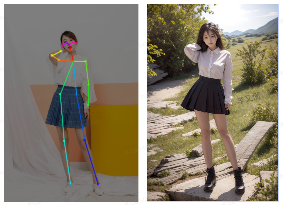 看看生成出来的照片,模特的姿势就几乎完全复刻出来了