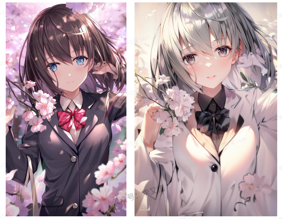 关键词还可以加上情绪的描述,或者不一样的服装发型