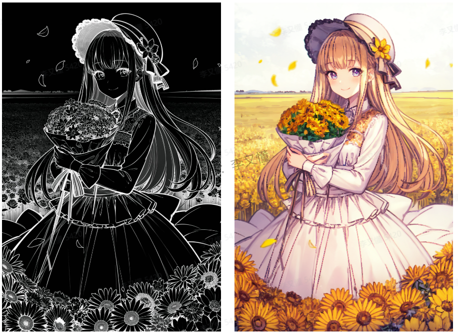 或者用两个controlnet:一个固定线稿,一个影响画风
