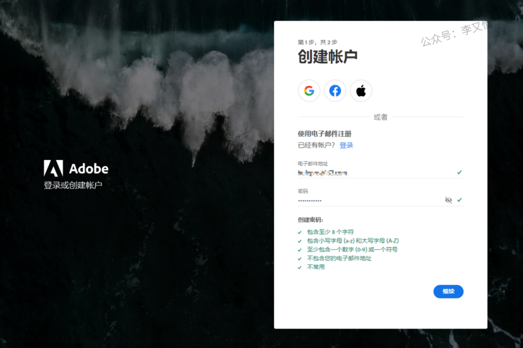 邮箱最好用gmail,为了确保「创成式填充」功能可以正常使用,优先考虑用gmail。