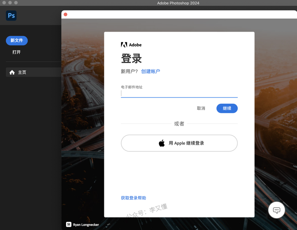 安装好Photoshop之后,打开界面,会提示你登录账号:
