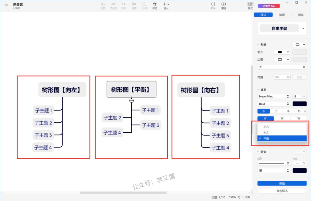特点:思维导图最基础的结构,从一个中心出发、向两侧辐射发散。