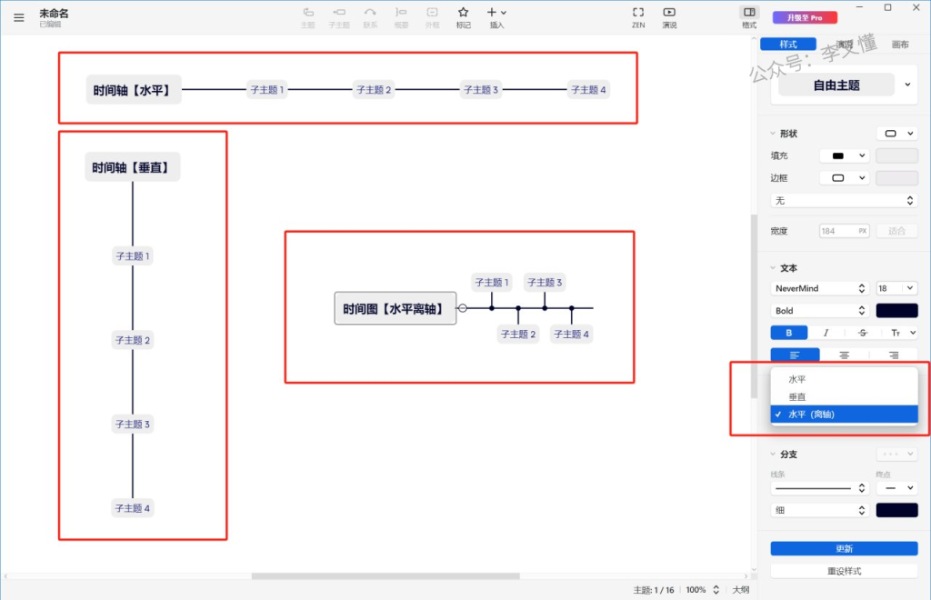有 2 种结构:水平时间轴、垂直时间轴,左右分布的水平时间轴。分别如下图: