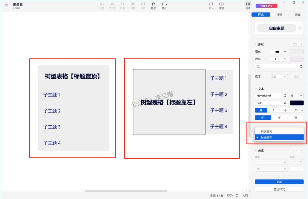 特点:呈现树状思维结构。像树根一样向下扎根,增加子主题,树形图结构会往下增加。