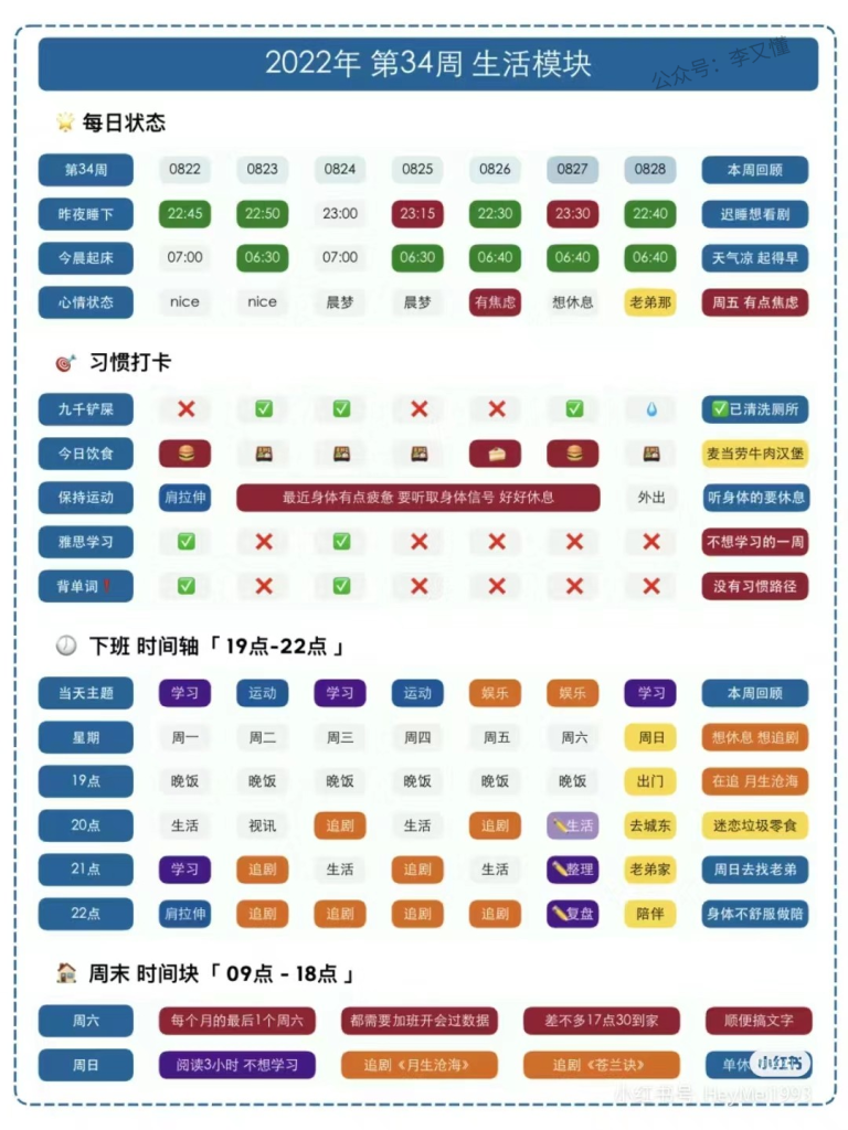 每日复盘/周复盘/年复盘,也可参考这种方式。